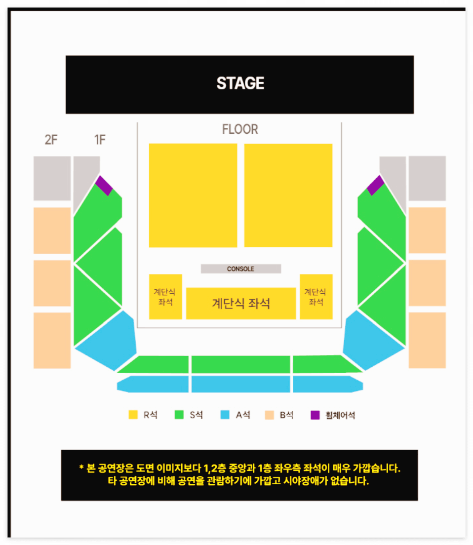 | R석 | 154,000원 | 123,200원 | 경증장애인(4~6급) 본인만20% 중증장애인 (1~3급) 동반1인20% |