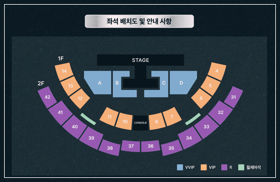 | 좌석 | 티켓가격 | 할인가격 | 할인방법 | 휠체어석 |